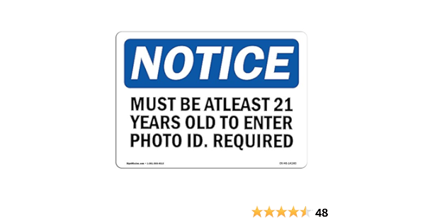 Osha Notice Sign Must Be At Least 21 Years Old To Enter Photo Vinyl Label Decal Protect Your Business Construction Site Made In The Usa Industrial Scientific Amazon Com